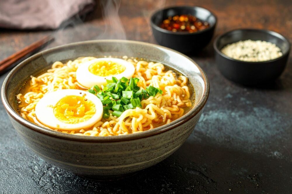 Instant ramen takes a twist when jazzed up with kitchen staples like garlic, soy sauce, and chili oil. A jammy soft-boiled egg dropped on top elevates it from a midnight snack to a craveable bowl with layered depth.