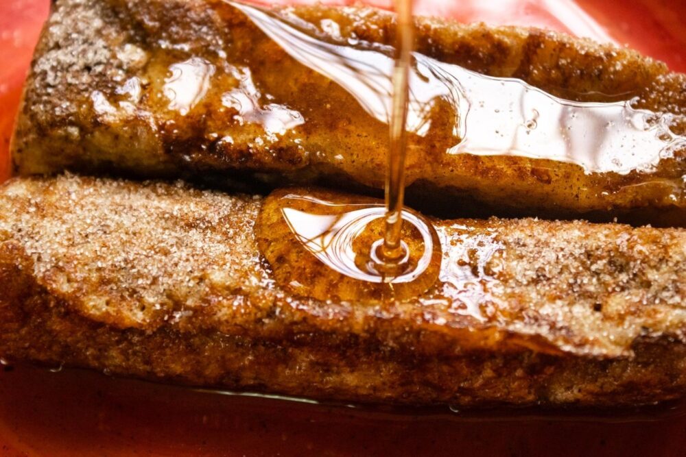 5. French toast sticks coated in cinnamon sugar and maple syrup.