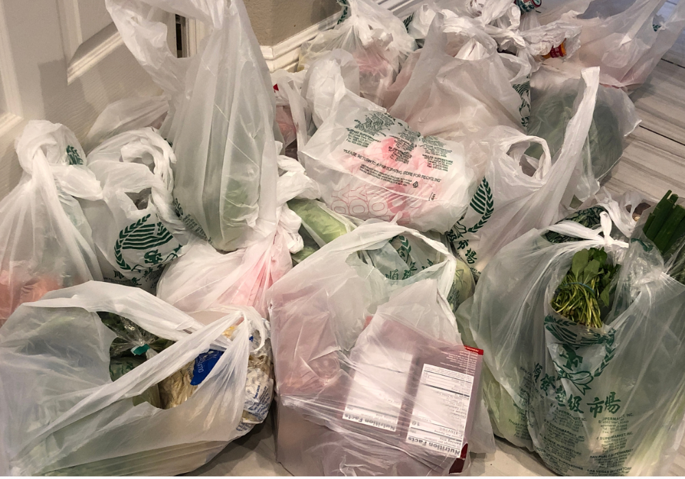 4. Relying on plastic bags instead of reusable alternatives when shopping.