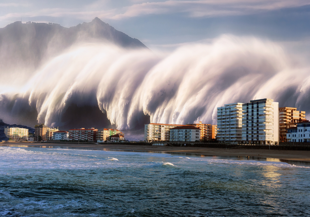 Most people picture a tall ocean wave, but a 1,000-foot mega-tsunami is more like a wall of water consuming everything in sight. It would tower higher than the Empire State Building and move inland with unstoppable force.