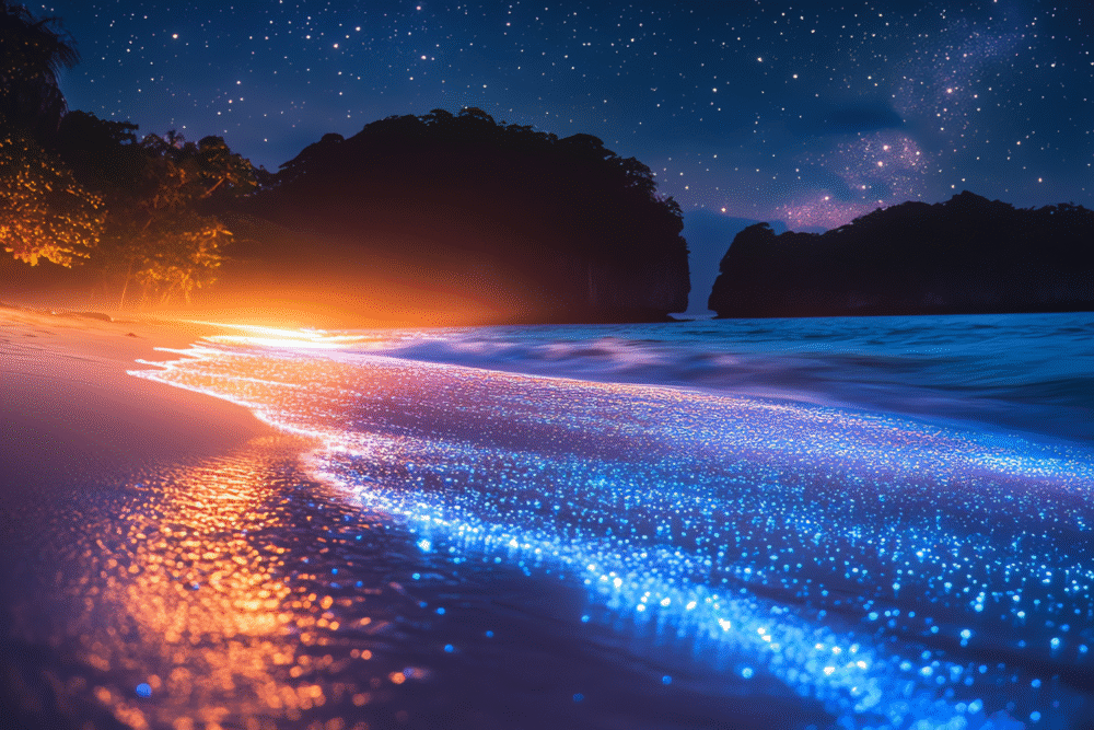 1. The glowing waves of bioluminescent bays that light up the night.