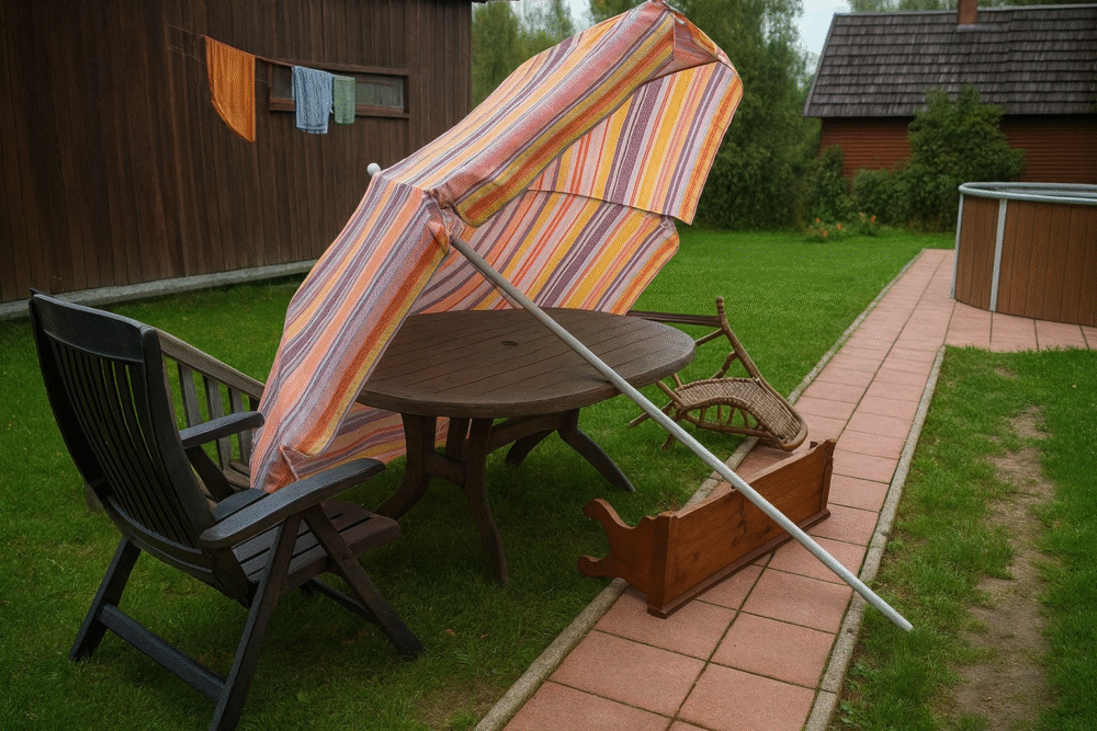 Even everyday outdoor items can become dangerous projectiles when strong winds begin to blow.