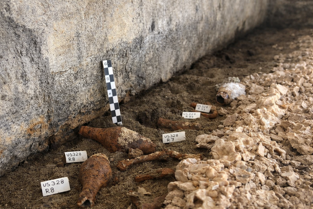 Several jars and tools were found inside the sarcophagus, likely used during body preparation and funerary rituals. These objects offer insight into the ceremonial aspects of death in Roman society.