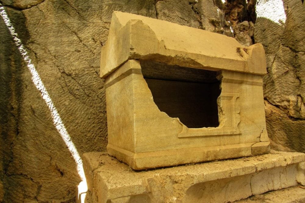 Before lifting the heavy stone lid, researchers inserted a small camera to see inside. What appeared on the screen immediately stood out: a human body still wrapped in cloth, not reduced to scattered remains as often happens with burials of this age.