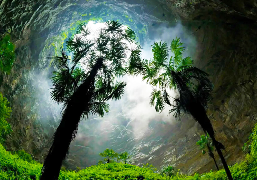 At roughly 630 feet deep and 1,000 feet long, the sinkhole is one of the largest ever discovered. Its steep walls shield the interior from wind, temperature changes, and most sunlight—creating a stable, humid environment ideal for plant growth.