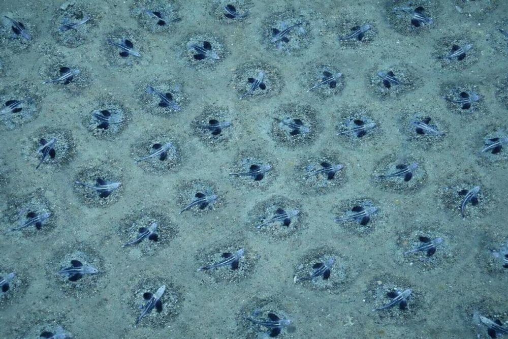 The ROV footage showed countless circular depressions across the seafloor, many clustered tightly together. At first glance, they looked like simple impressions, but their sheer number and uniformity suggested something biological rather than geological. The patterns were too regular and widespread to be random.
