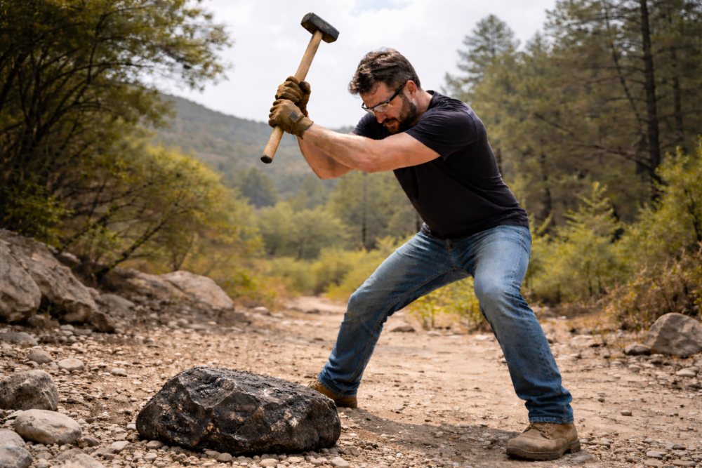 But the rock would not split. It was far tougher than anything he had encountered before. Its resistance only deepened the mystery and strengthened his belief that something dense and valuable must be hidden within.