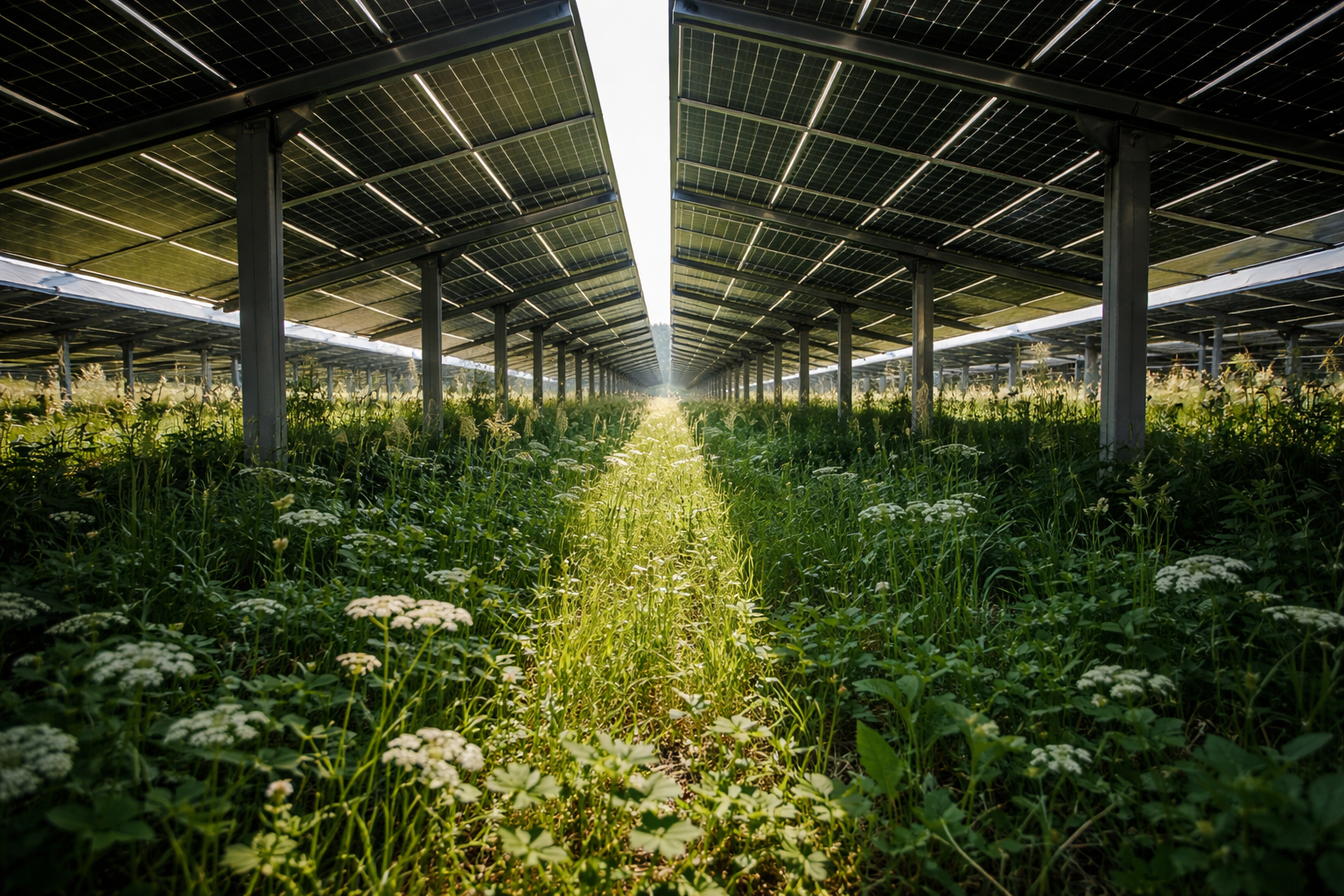 Over time, this creates small microclimates beneath the panels. These pockets can be cooler and slightly wetter, offering opportunities for vegetation that would otherwise struggle to survive.