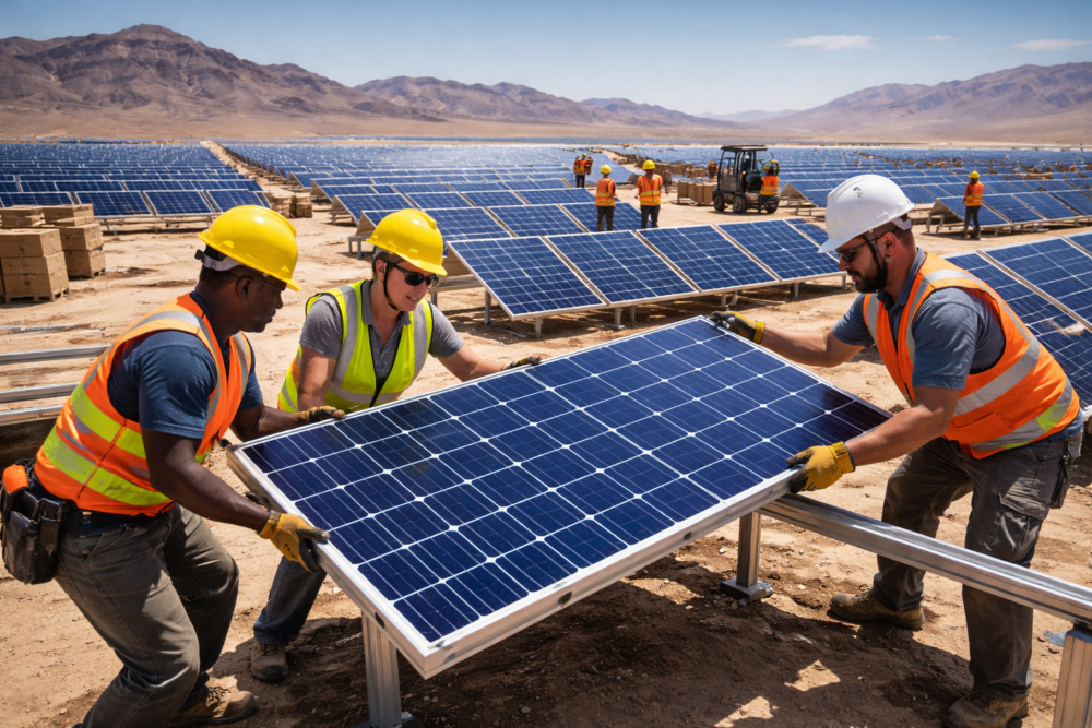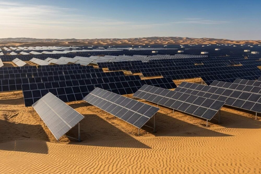 Desert regions offer abundant sunlight, wide open space, and relatively low population density. These factors make them attractive locations for large renewable energy projects.