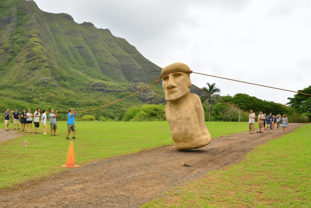 To test the theory, researchers built a 10-foot-tall concrete replica modeled on authentic moai proportions. In a dramatic experiment, 18 volunteers moved it upright over 300 feet in just 40 minutes using only three ropes and synchronized pulling.