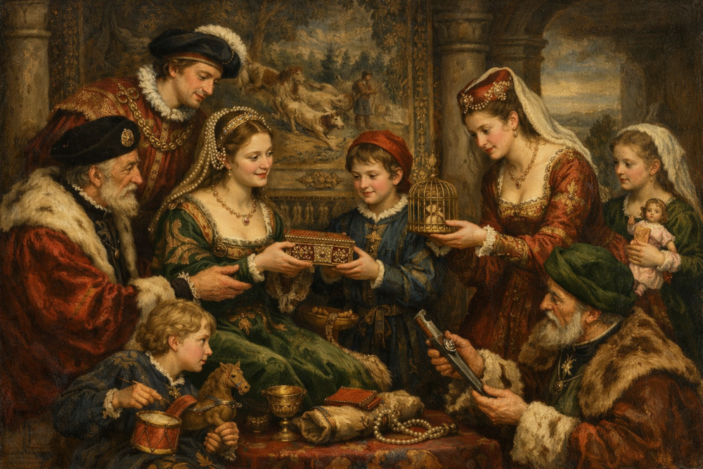 Gift-giving played a much smaller role than it does today. When gifts were exchanged, they were often practical or symbolic rather than personal surprises.