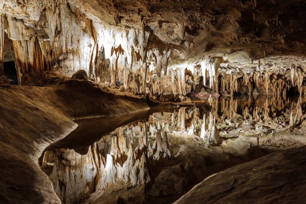 On Earth, karst caves form when slightly acidic water slowly dissolves soluble rock, widening cracks into chambers over long time spans. Think limestone caves, but the recipe can work with other minerals too.