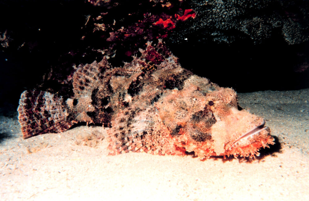 One surprising trait is the stonefish’s ability to endure long periods out of water. During low tide, they can remain motionless on rocks or in tide pools while still fully alive.